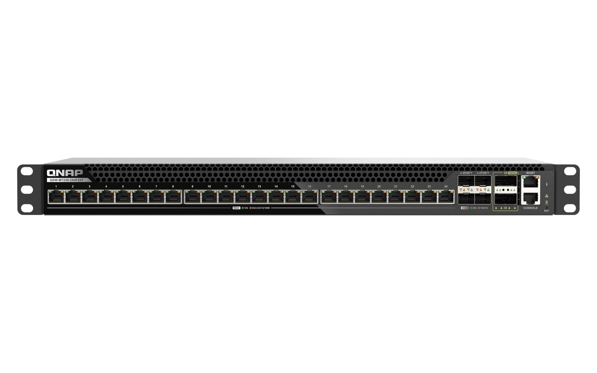 A QSW-M7230-2X4F24T két 100 GbE-s QSFP28-portot, négy 25 GbE-s SFP28-portot és huszonnégy 10 GbE-s RJ45-portot egyesít egyetlen platformban, lehetővé téve a 100 GbE-s gerinchálózati kapcsolatot, a 25 GbE-s uplinket szerverekhez és NAS-rendszerekhez, valamint a nagy sűrűségű 10 GbE-s hozzáférést munkaállomásokhoz és az aggregált switchekhez. Ez a többsebességes dizájn lehetővé teszi a vállalkozásoknak a 25 GbE vagy 100 GbE bevezetését olyan helyeken, ahol a teljesítmény kritikusan fontos, miközben megőrzi a meglévő 10 GbE-s infrastruktúrát – megkönnyítve ezzel a frissítést és meghosszabbítva az általános hálózati architektúra életciklusát.